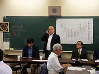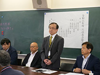山上会長の挨拶の後、港高校・浦山校長からは学校の現状(1クラス増設要請に対応予定であること、それにもかかわらず希望者数が300名を超えていることなど)ご報告をいただきました。教えてっ!先輩については、その一方で教員の不足、現在の生徒に求められる教育を見据え来年以降に違った形での実施を目指したいというお話がありました。