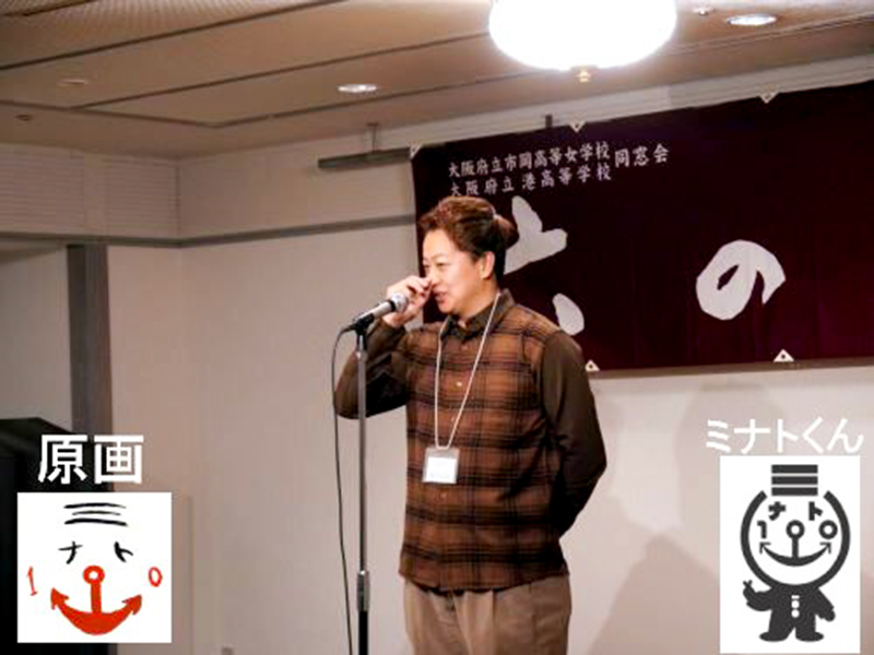 元教諭の小川先生の話があったり、今回は100周年の時に作ったキャラクター、ミナトくんの原画を描かれた港62期の磯貝さんにも挨拶をお願いしました。