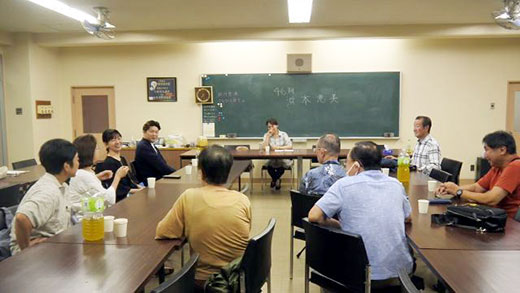 朝夕が随分凌ぎやすくなった10月8日、港46期・浜本さんにお話しいただきました。女子バスケット部で一期上の先輩及び同期男女2名も応援に駆けつけてくれた中、まずは港高校在学時の話からスタート。バスケを中心に高校生活を楽しんでいたが、勉強・進学に強い思いを抱かず就職をすることに。 しかし、当初はバブル後の就職氷河期。進路指導の先生とも相談をしてあちこちアプローチをしたが上手くいかず、お先真っ暗になっていた。そんな時、参考に調べていた過去の卒業生の就職先リストに自宅すぐ近くの海運会社を発見。先生からその会社に打診してもらったところ「近所にお住まいなら」と道が開けて目出度く就職できた。